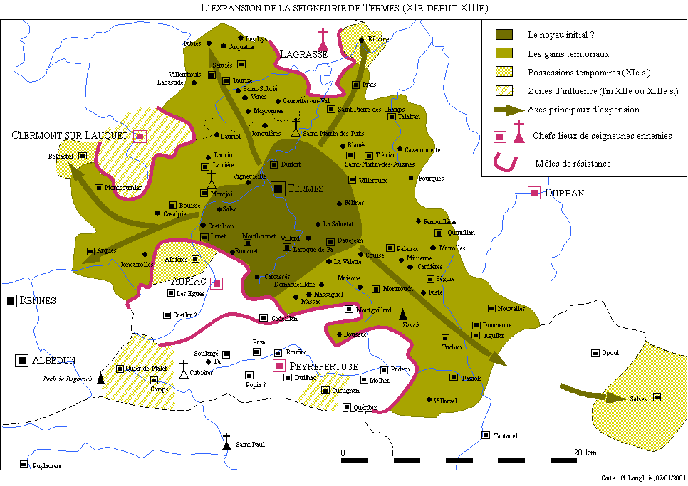 Nous allons l'observer avec l'évocation de la famille seigneuriale de Termes et de ses alliances. Plus loin, nous verrons qu'Olivier de Termes contribuera à la fixation de "la" frontière !