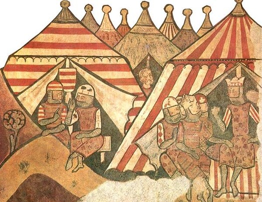 Le campement des croisés de Jaume Ier. Peinture murale barcelonaise.