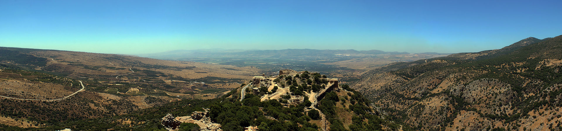 Vue sur "Nimrod Castle" (château de Subeibé) et l'ouest. Plateau du Golan.
