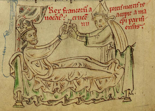 Louis IX, guéri, fait voeu de croisade. Matthew Paris, Domaine public, via Wikimedia Commons